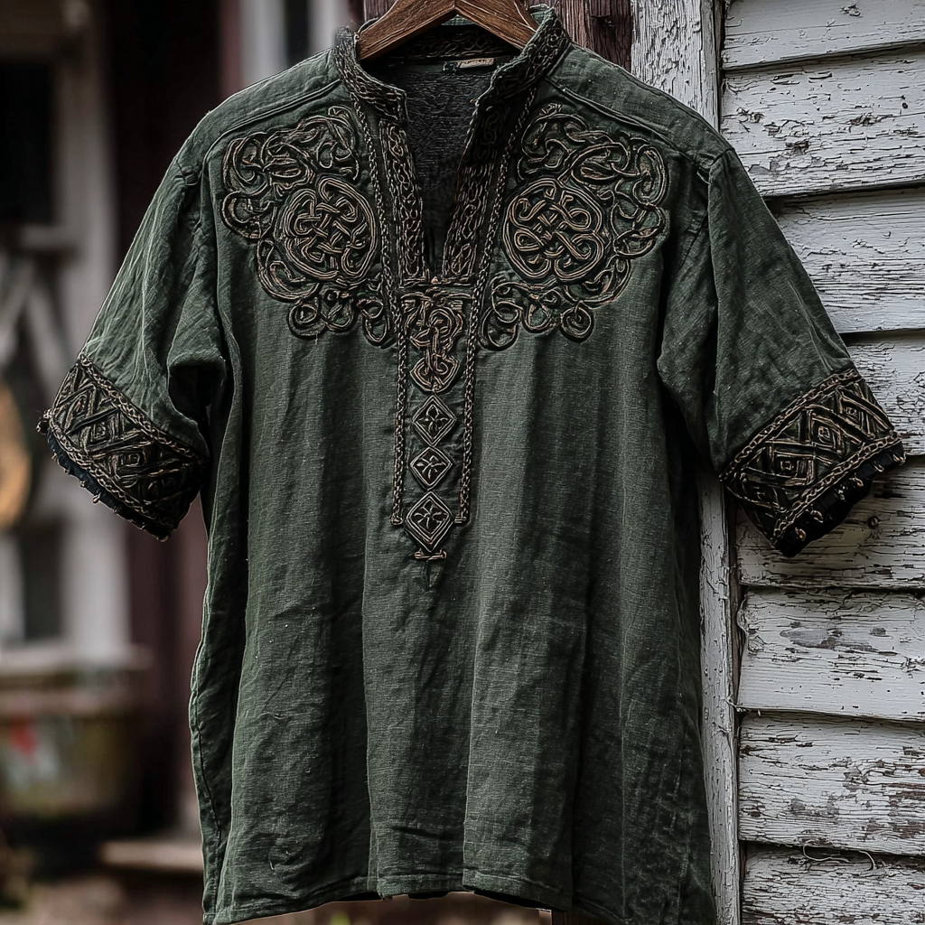 Men's Vintage Viking Celtic Knot Art V Neck Linen Shirt